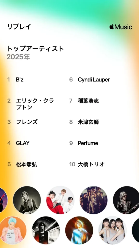 こちらは私のapple music、2025年の総決算ハイライト。