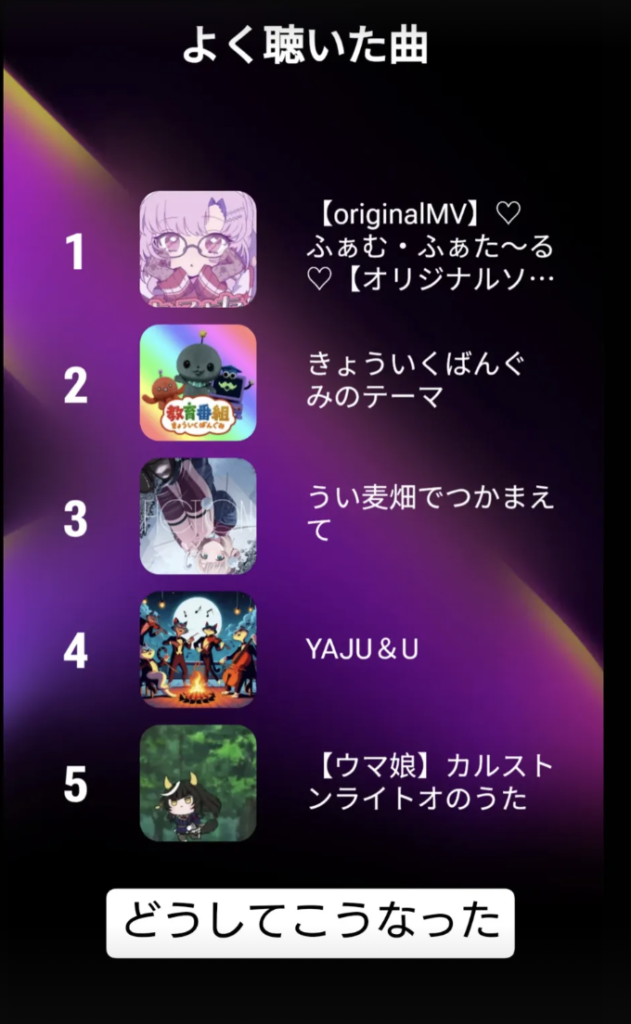YouTubeやらapple musicやら、各種サービスでは「今年よく見た・聴いたものリスト」を教えてくれています。